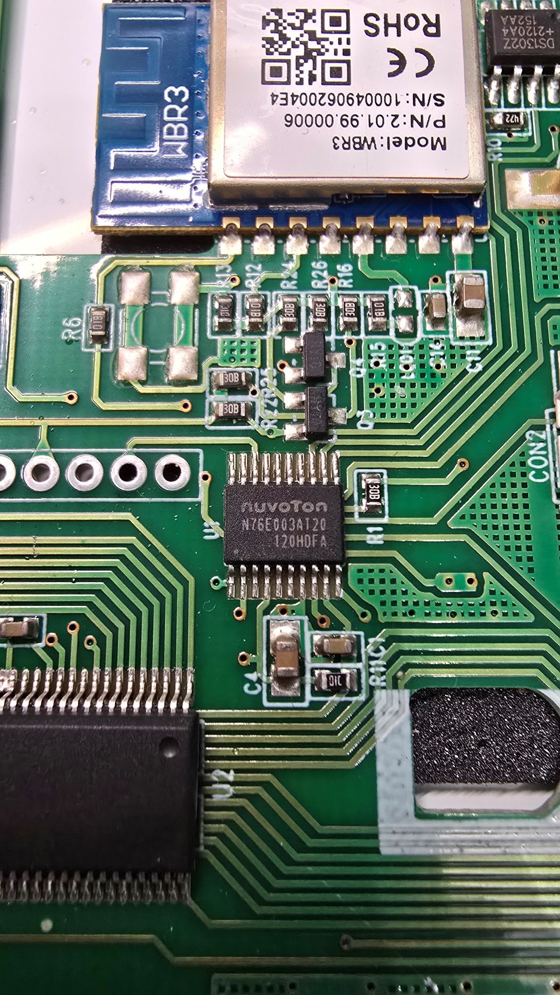 N76E003 — это встраиваемый 8-битный высокопроизводительный 1T микроконтроллер на базе 8051 с флэш-памятью. Набор инструкций полностью совместим со стандартным 80C51 и имеет улучшенную производительность. N76E003 содержит до 18 Кбайт основной флэш-памяти, называемой APROM, в которой хранится содержимое пользовательского кода. Флэш-память N76E003 поддерживает функцию внутриприкладного программирования (IAP), которая позволяет обновлять встроенную прошивку. Имеется дополнительная флэш-память, называемая LDROM, в которой обычно хранится загрузочный код для выполнения внутрисистемного программирования (ISP). Размер LDROM настраивается и составляет максимум 4 Кбайт.