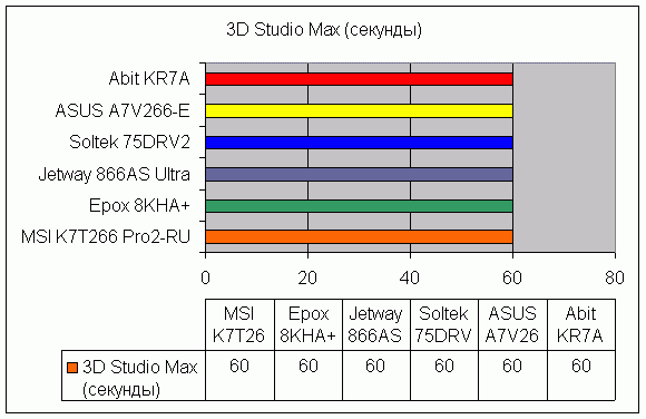 Studio MAX R3. Для измерения производительности замерялось время, в течение