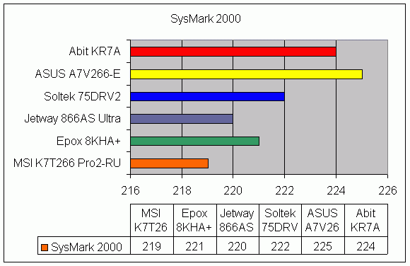 Тест Sysmark2000, демонстрирует среднюю производительность в 2D приложениях
