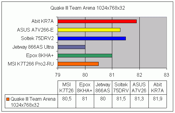 Asus. За ними почти вплотную идут платы Epox 8KHA+ и Soltek SL-75DRV2.